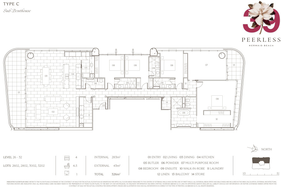 Il ne reste que deux sous-penthouses (surface intérieure : 283 m² - surface extérieure : 43 m² - surface totale : 326 m²) :